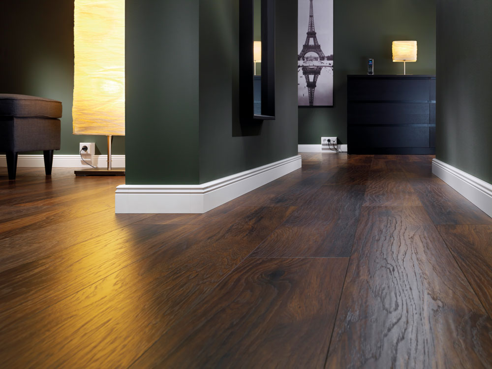 E-skirting trunking "Belle epoque" made of PVC according to DIN EN 50085-2-1 for cable laying on the wall, consisting of a base with double-row floor perforation for screwing and three separate chambers for cable laying/separation as well as a completely overlapping cover for snapping onto the base. The distance from the floor to the first occupancy chamber is 11 mm and thus fulfils the minimum distance to the floor according to DIN EN 50085-2-1.