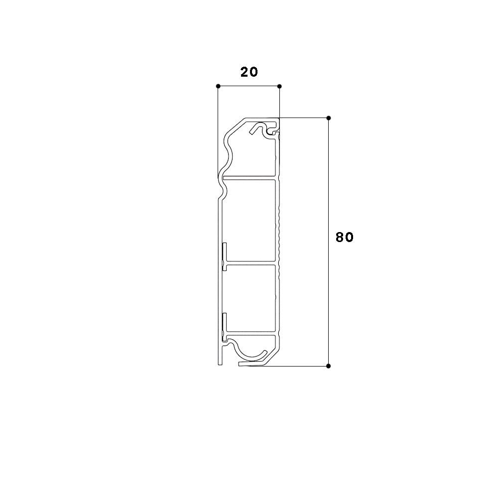 Skirting trunking 4D 20x80BP-9010, 3 chambers, perforated base, white (set: 4x1,5 m)