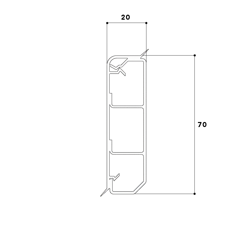 Skirting trunking SL 20x70-1019, PVC with sealing lip, 3 chambers, beige
