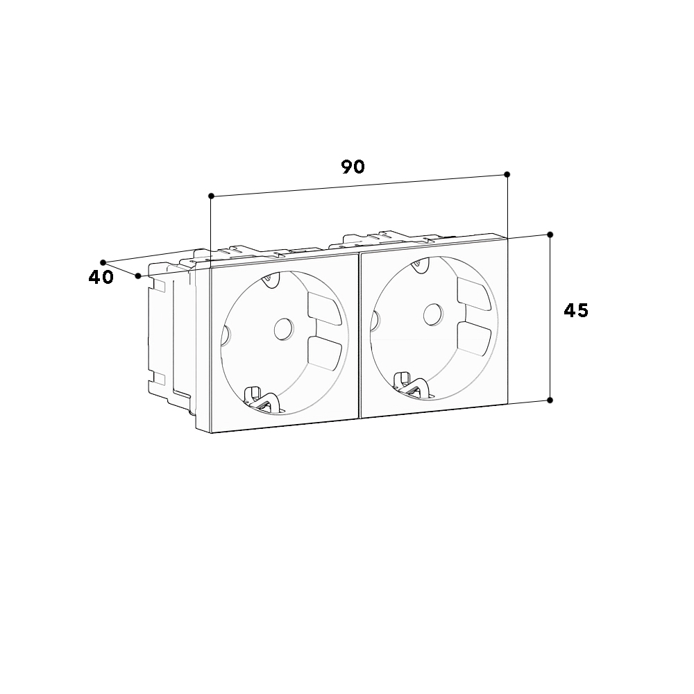 Socket double 0° M45-2G-9010, 45x45mm with enhanced contact protection, white