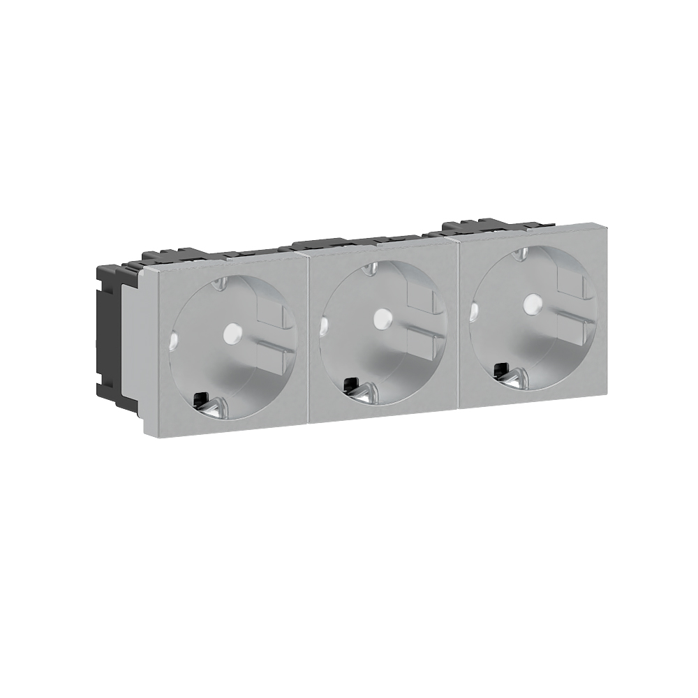 Socket triple 0° M45-3G-9006, 45x45mm with enhanced contact protection, alu