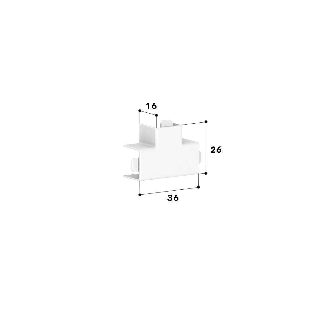 T-piece as moulded hood for installation trunking, for cable routing with a 90° branch.