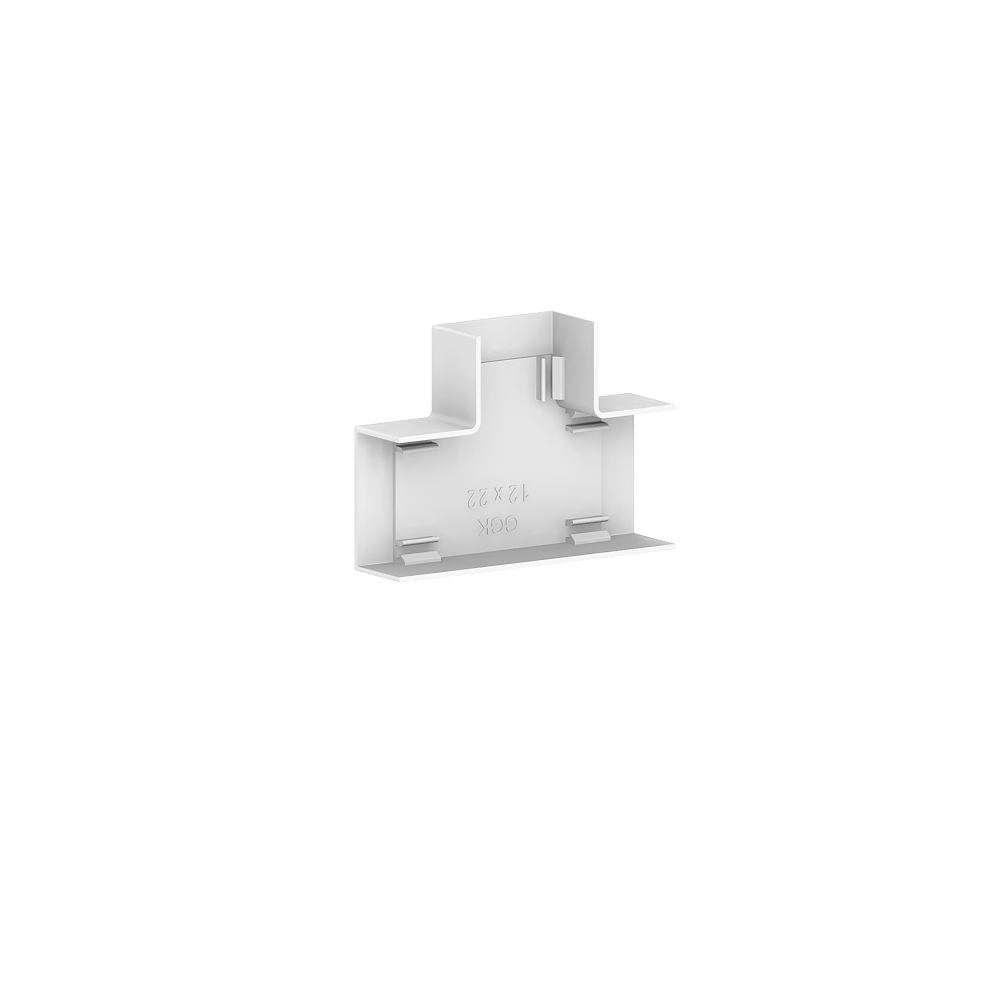T-piece as moulded hood for installation trunking, for cable routing with a 90° branch.