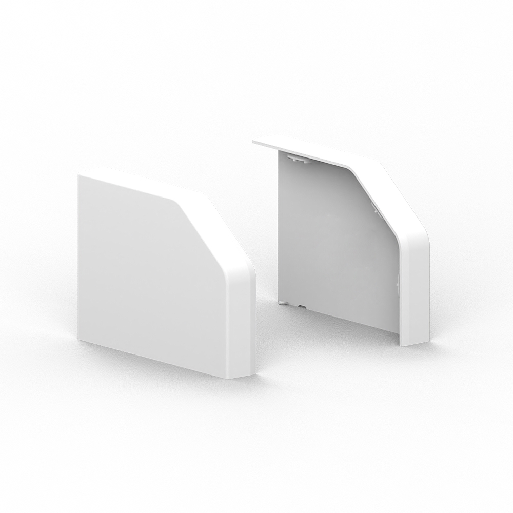 PVC transition cover section, for protection and as a transition from laid cables to distribution cabinets, can be shortened to size as required. The profile holders and the pair of end pieces must be ordered separately. Note: Due to the asymmetrical shape of the cover profile, the profile can be mounted flexibly in height and width (H110 x W150 mm or H150 x B110 mm).