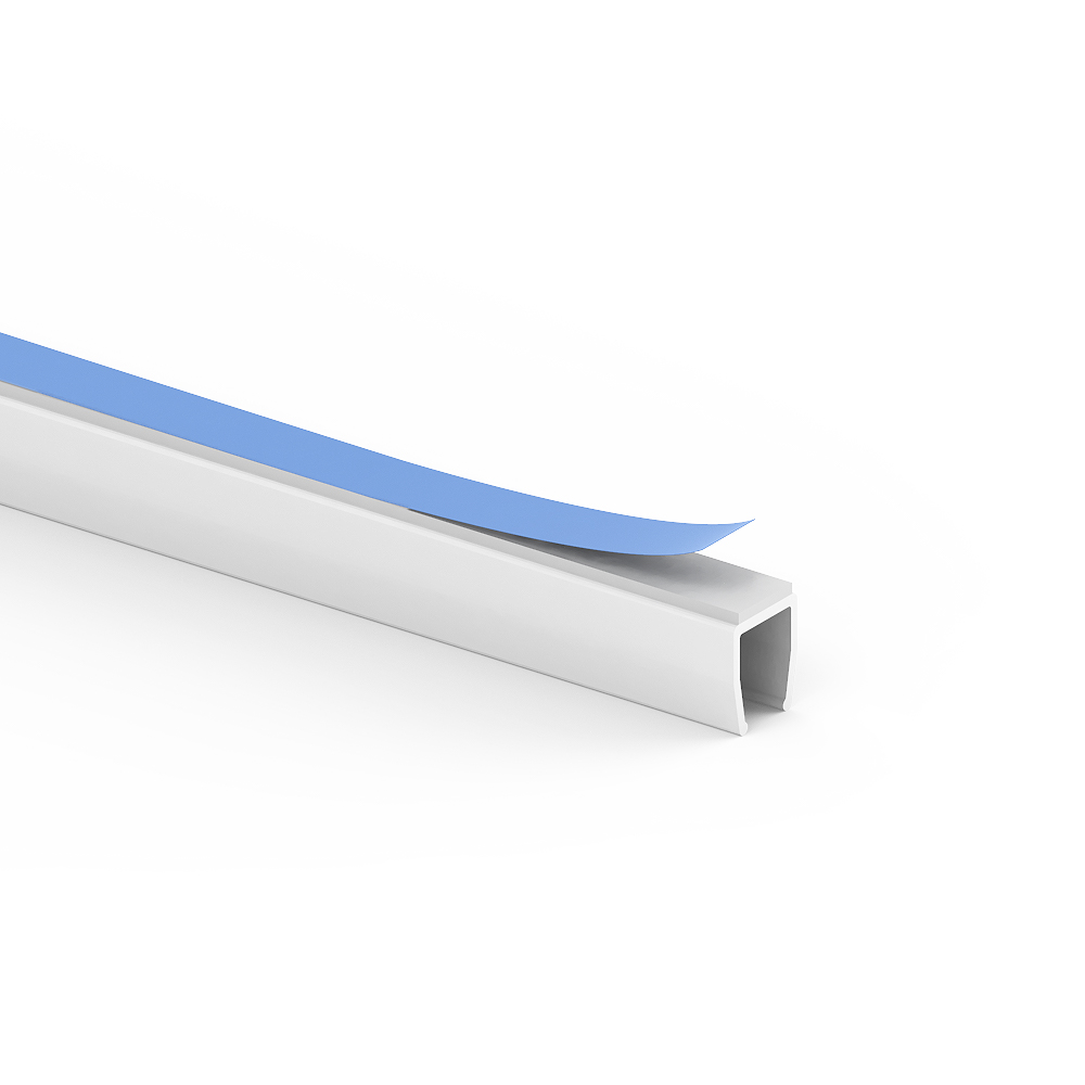 PVC trunking with double-sided adhesive foam tape for laying cables on walls and ceilings. Note: For long-term use, we recommend nailing or screwing.