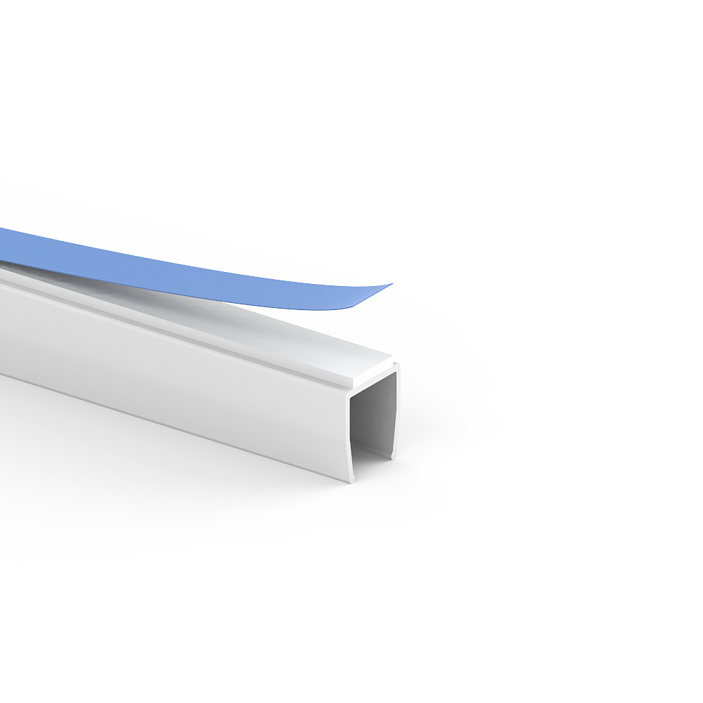 PVC trunking with double-sided adhesive foam tape for laying cables on walls and ceilings. Note: For long-term use, we recommend nailing or screwing.