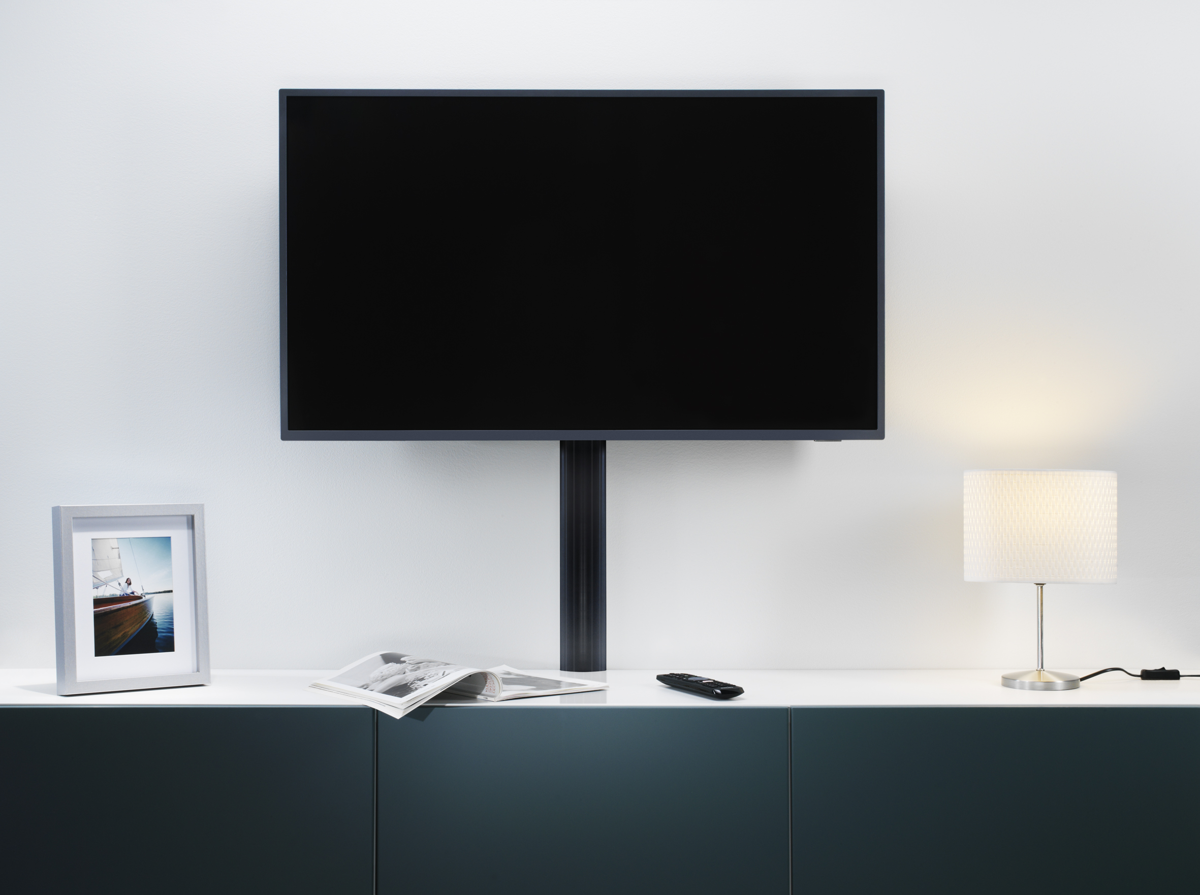 Semi-circular cable cover to accommodate and conceal cables below the flat screen. Profile with two separate chambers for neat cable routing, suitable for 2 to 3 cables (Ø = 8 mm). A double-sided adhesive tape is enclosed with the TV cable cover as an installation aid - additional screwing is recommended for permanent installation. Note: The colour of the bases may vary due to production.