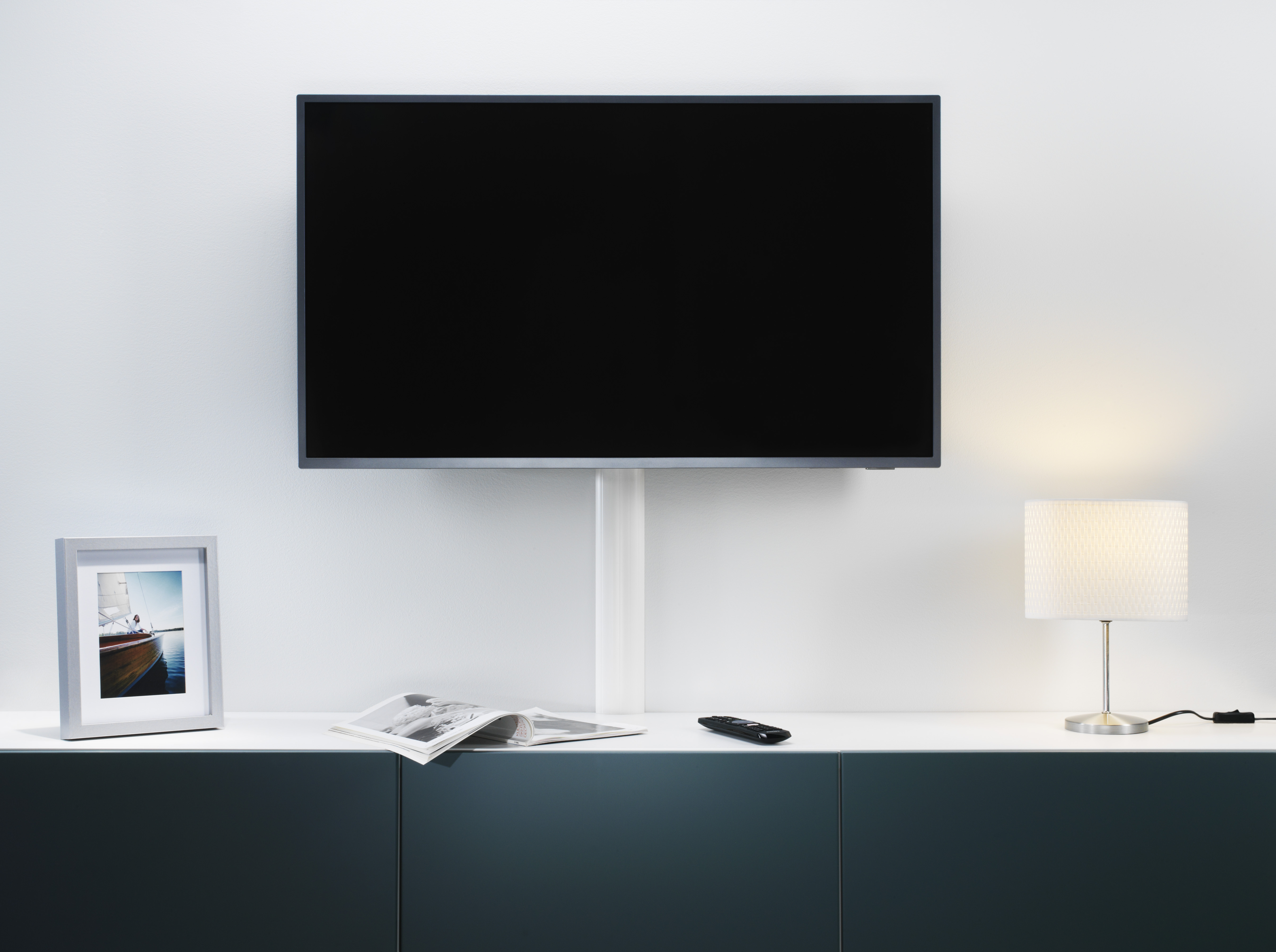 Semi-circular cable cover to accommodate and conceal cables below the flat screen. Profile with two separate chambers for neat cable routing, suitable for 2 to 3 cables (Ø = 8 mm). A double-sided adhesive tape is enclosed with the TV cable cover as an installation aid - additional screwing is recommended for permanent installation. Note: The colour of the bases may vary due to production.