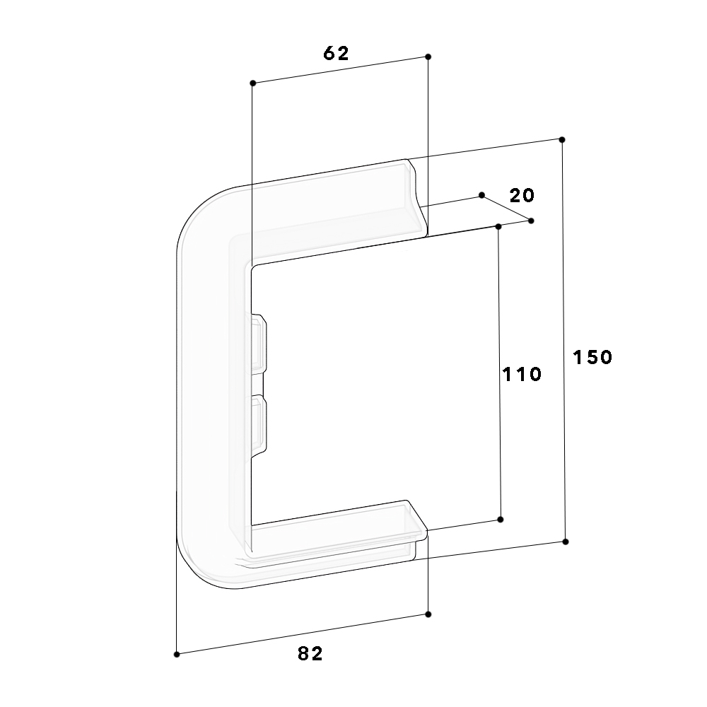 Wall connection trim for wall duct 60x110/80 (Series: BR, BRA, BRS) and installation trunking 60x110 (Series: FB), for closing off wall openings during wall mounting.