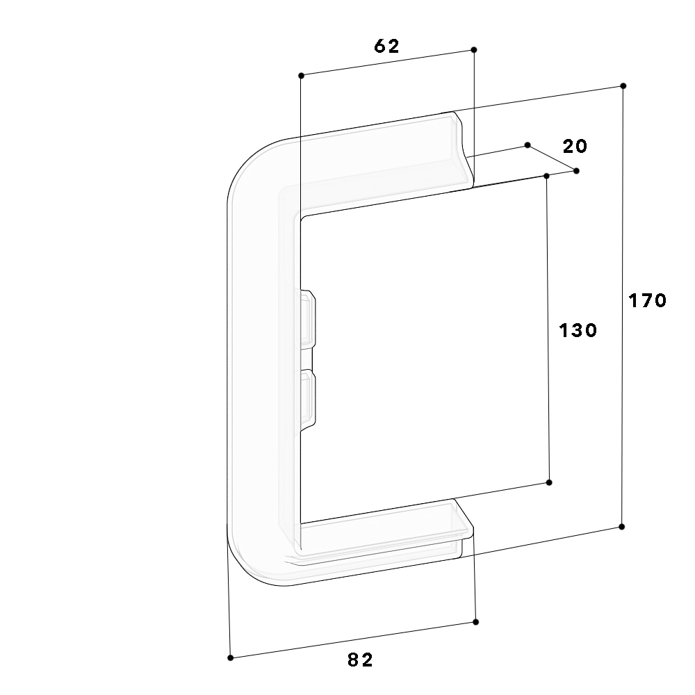 Wall connection trim for wall duct 60x130/80 (Series: BR, BRA, BRS) and installation trunking 60x130 (Series: FB), for closing off wall openings during wall mounting.