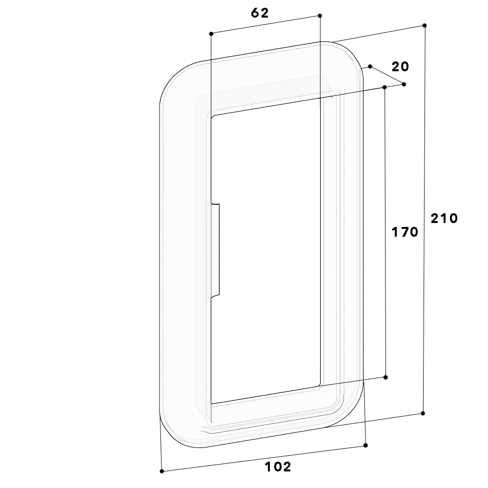 Wall connection trim for wall duct 60x170/80 (Series: BRA), for closing off wall openings during console installation.