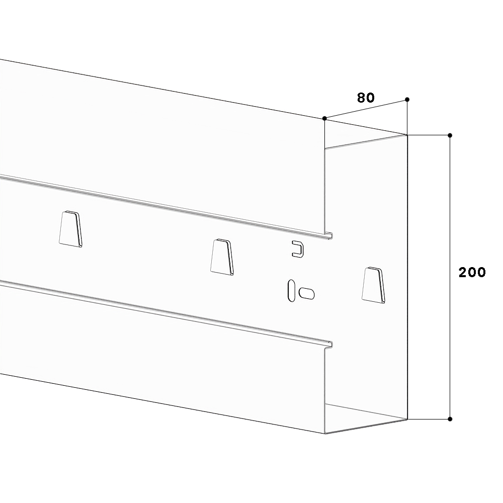 Wall trunking-base BRS 80x200, steel, 80 mm cover, zinc