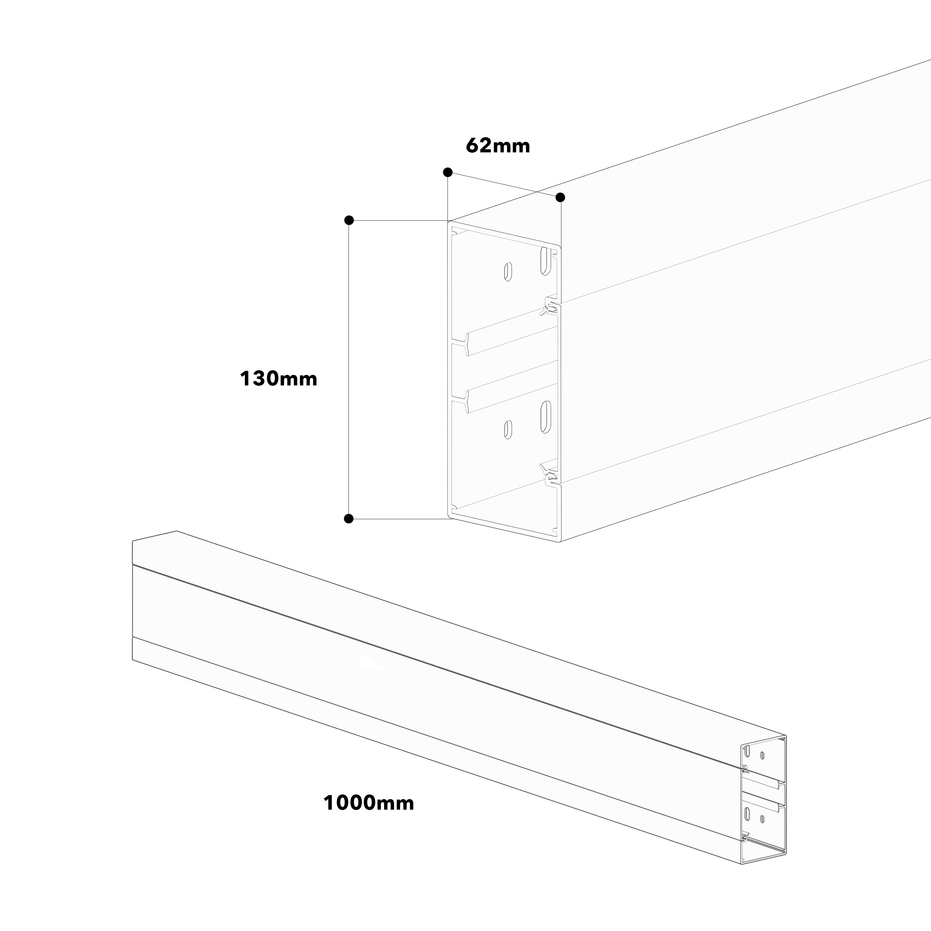 Wall trunking BR 60x130/80-9010, PVC, base and cover, 80 mm cover, pure white, length: 1.000 mm
