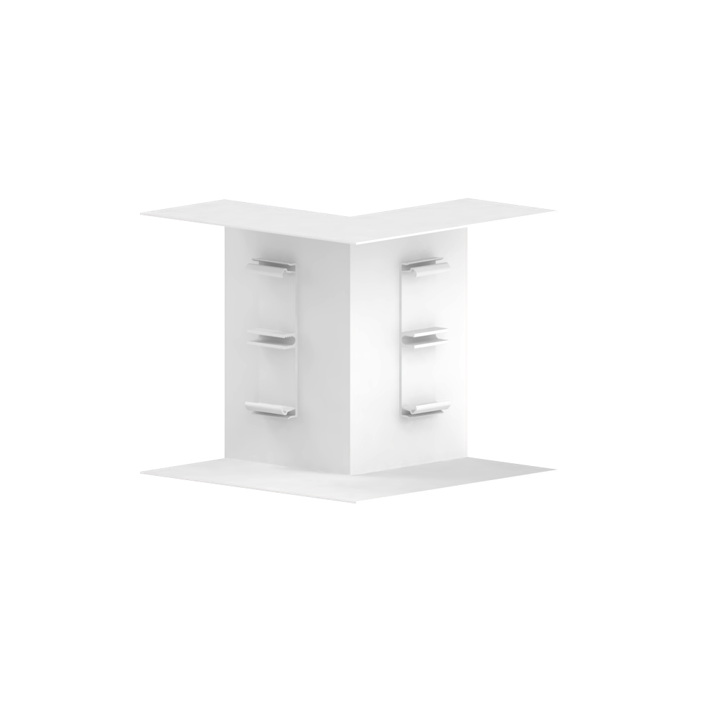 Angle intérieur (pièce moulée) pour goulottes sous allège en aluminium et tà´le d'acier pour la pose et la protection des câbles autour des angles muraux entrants s'emboîtant dans l'embase de la goulotte, longueur des cà´tés 150 mm.