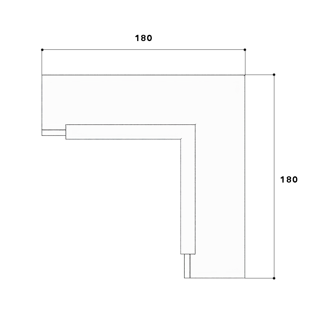 Angle intérieur 90° fabriqué coupé collé et assemblé à partir de l'embase de la goulotte de distribution en PVC, permettant la pose et la protection des câbles autour des angles muraux entrants, longueur des cà´tés 180 mm